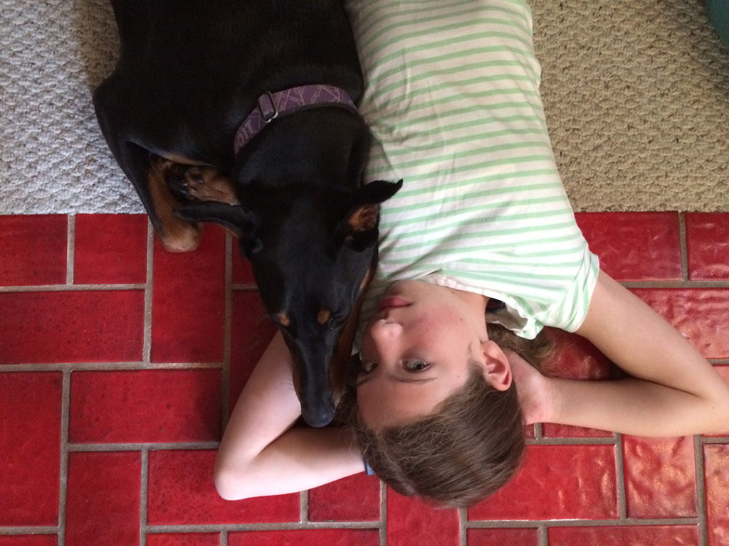 As for me, I’m sixteen and love playing volleyball. It is hands down my favorite sport! I also enjoy my family, especially my Grandma. We are very close. Speaking of close, my dog Cali rarely leaves my side. Sometimes, when we are at home, I kind of think she and I are almost Siamese twins. You will understand when you see the pictures below. lol.